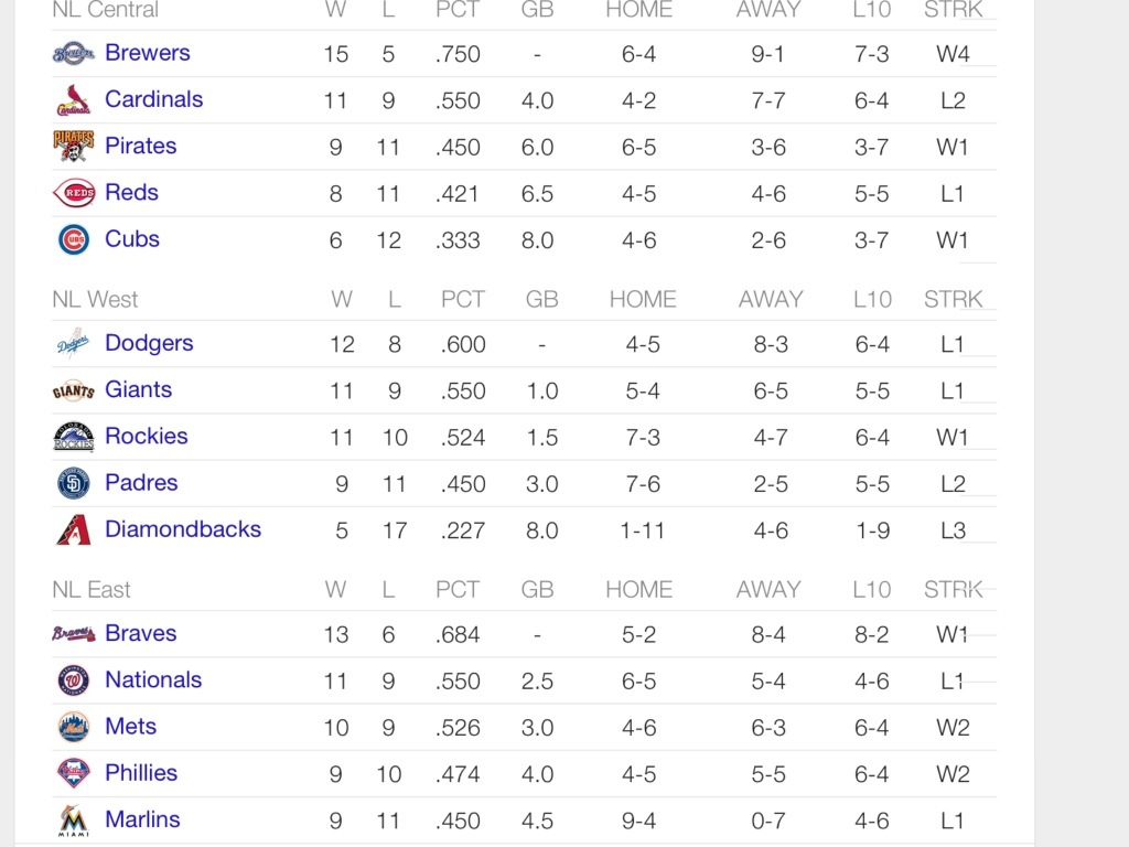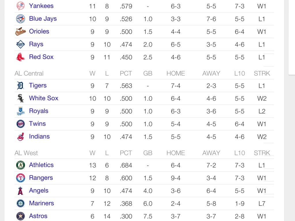 Standings as of 4/22