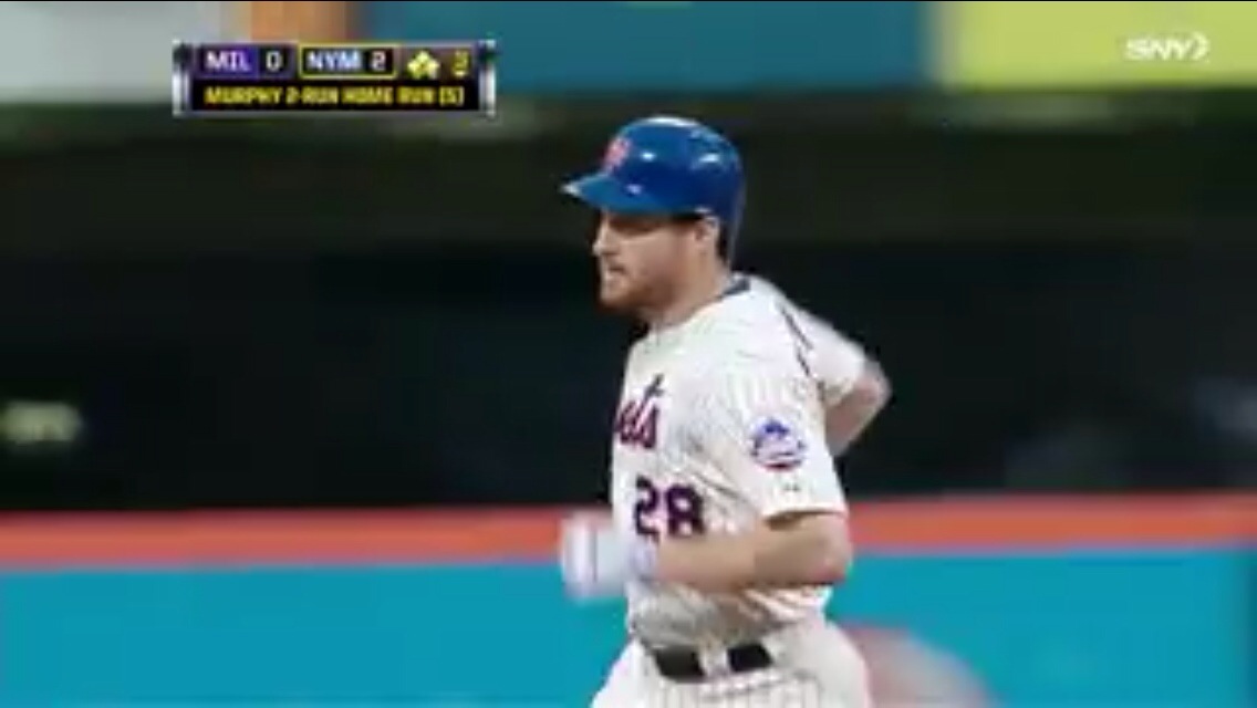 A really, really good game For the Mets. First in the Third inning, after a Ruben Tejada walk, Daniel Murphy slugged one into the right field corner for a 2-run shot!